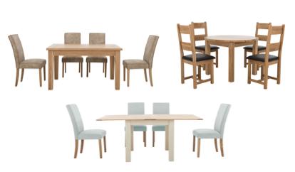 Opt for one of our ready-to-go dining sets with an extending dining table and as many as six dining chairs. Or create your own dining set by selecting from three styles of dining table - round, extending or square - and add your choice of wooden, faux suede, faux leather and fabric dining chairs.